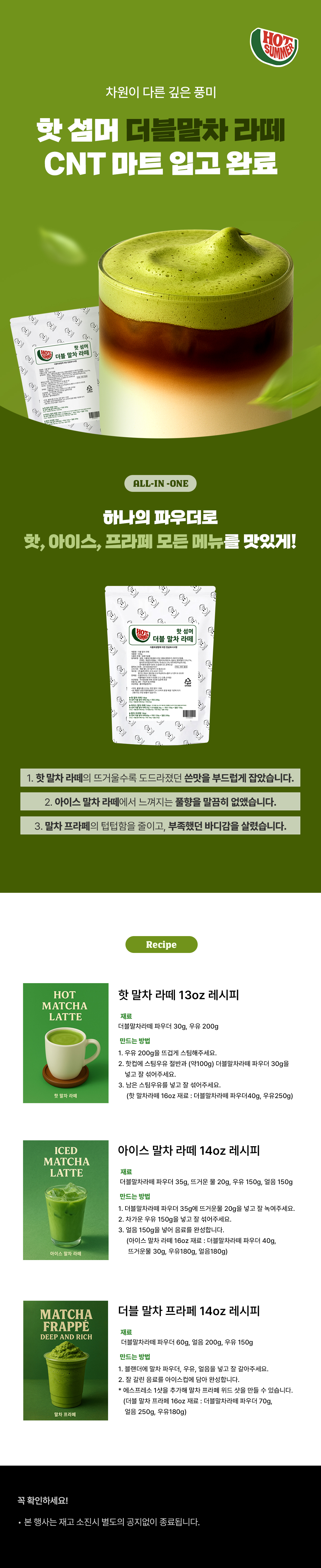 빅트레인 핫섬머 더블 말차라떼 파우더 500g 1박스(20개)