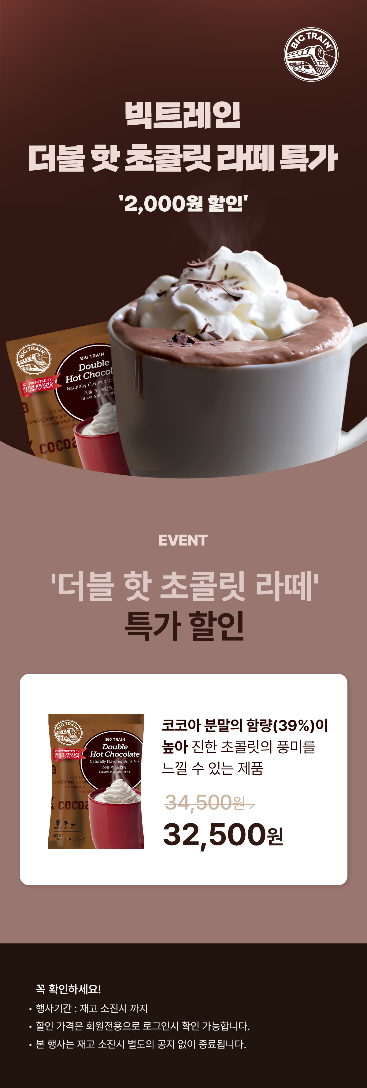 빅트레인 더블 핫초컬릿 파우더 1.59kg 2개묶음